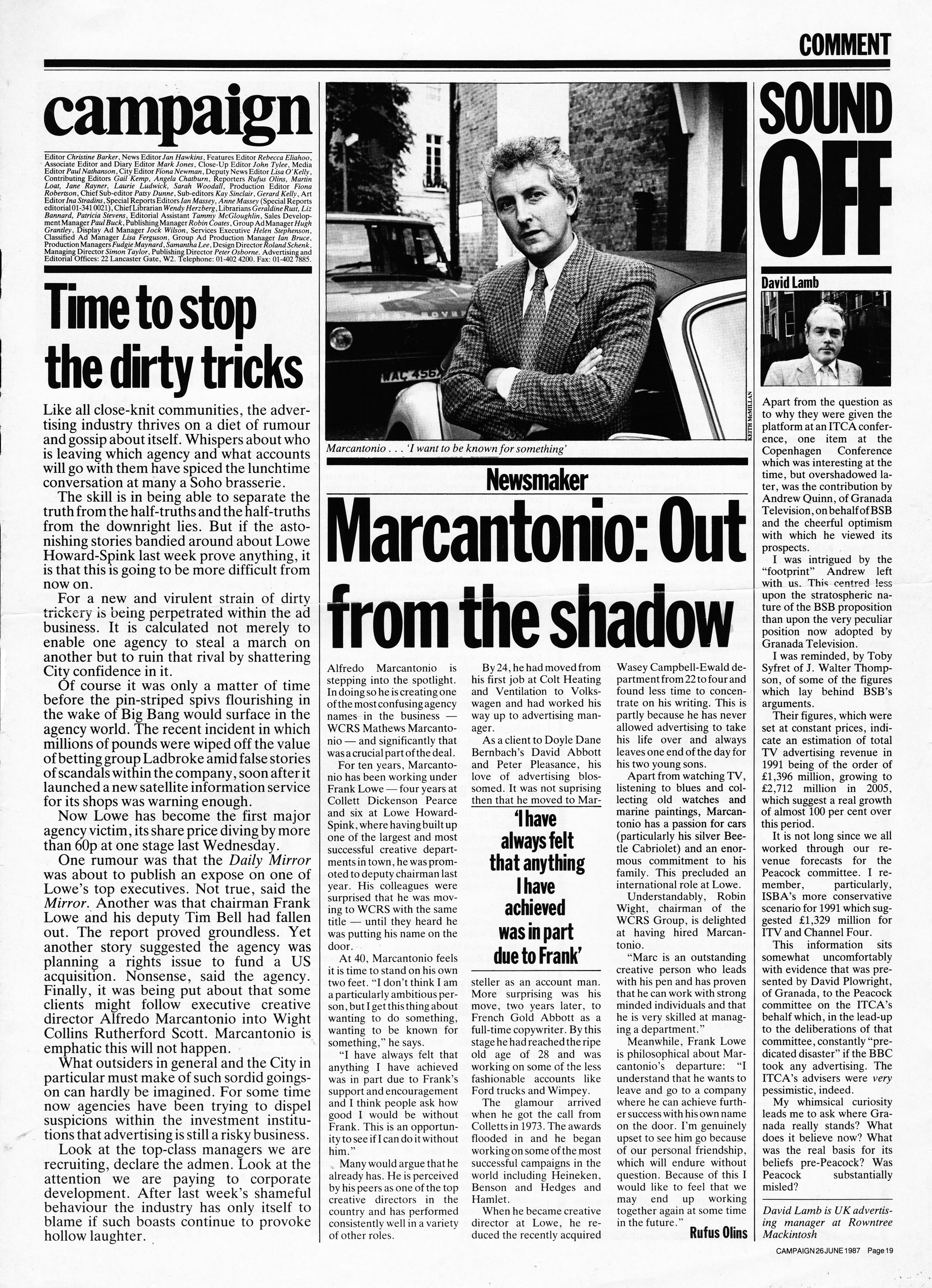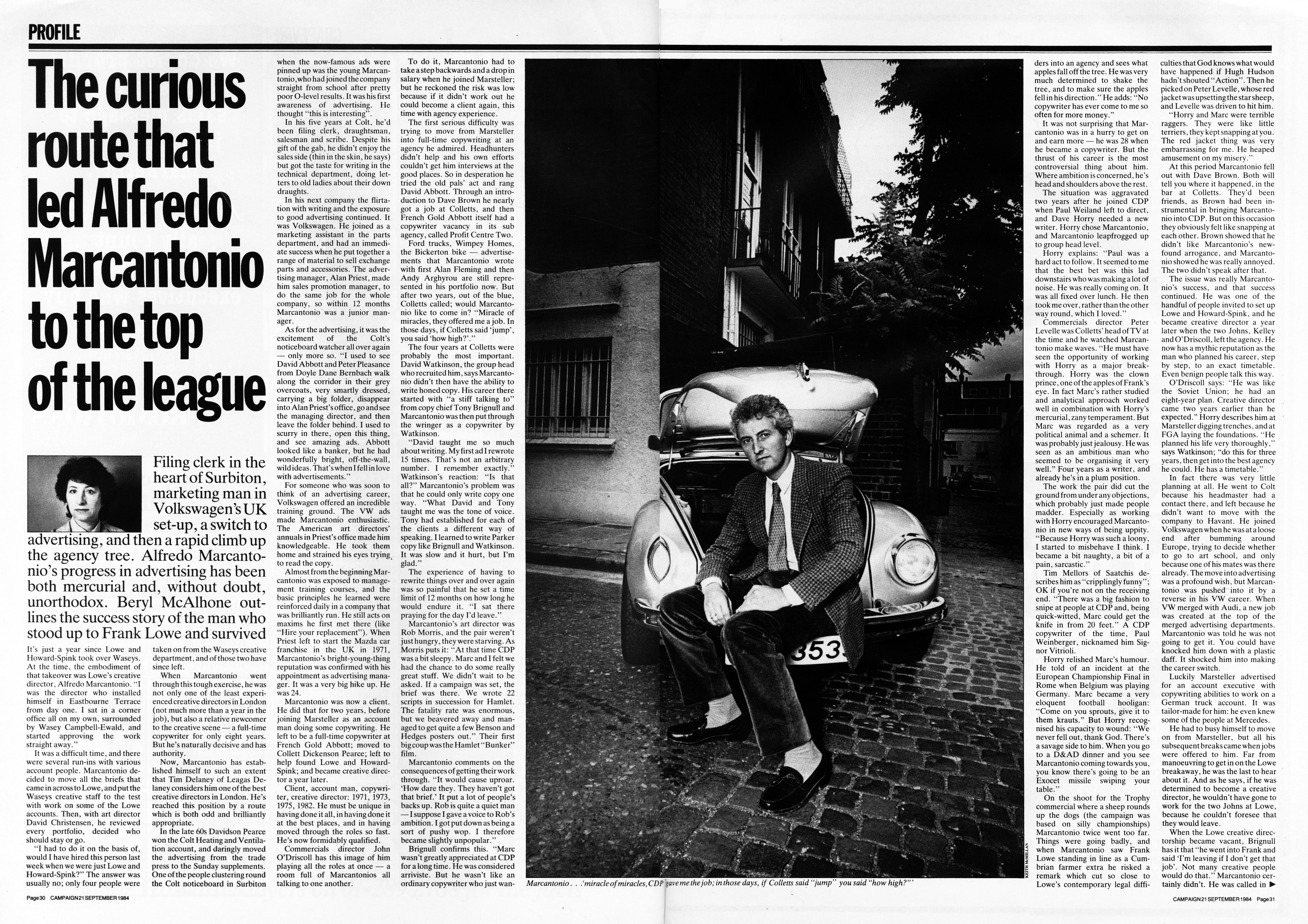On the way out the door, they advise Frank that he needed a Creative Director and it should be the least-known and youngest of the breakaways – Alfredo Marcantonio.