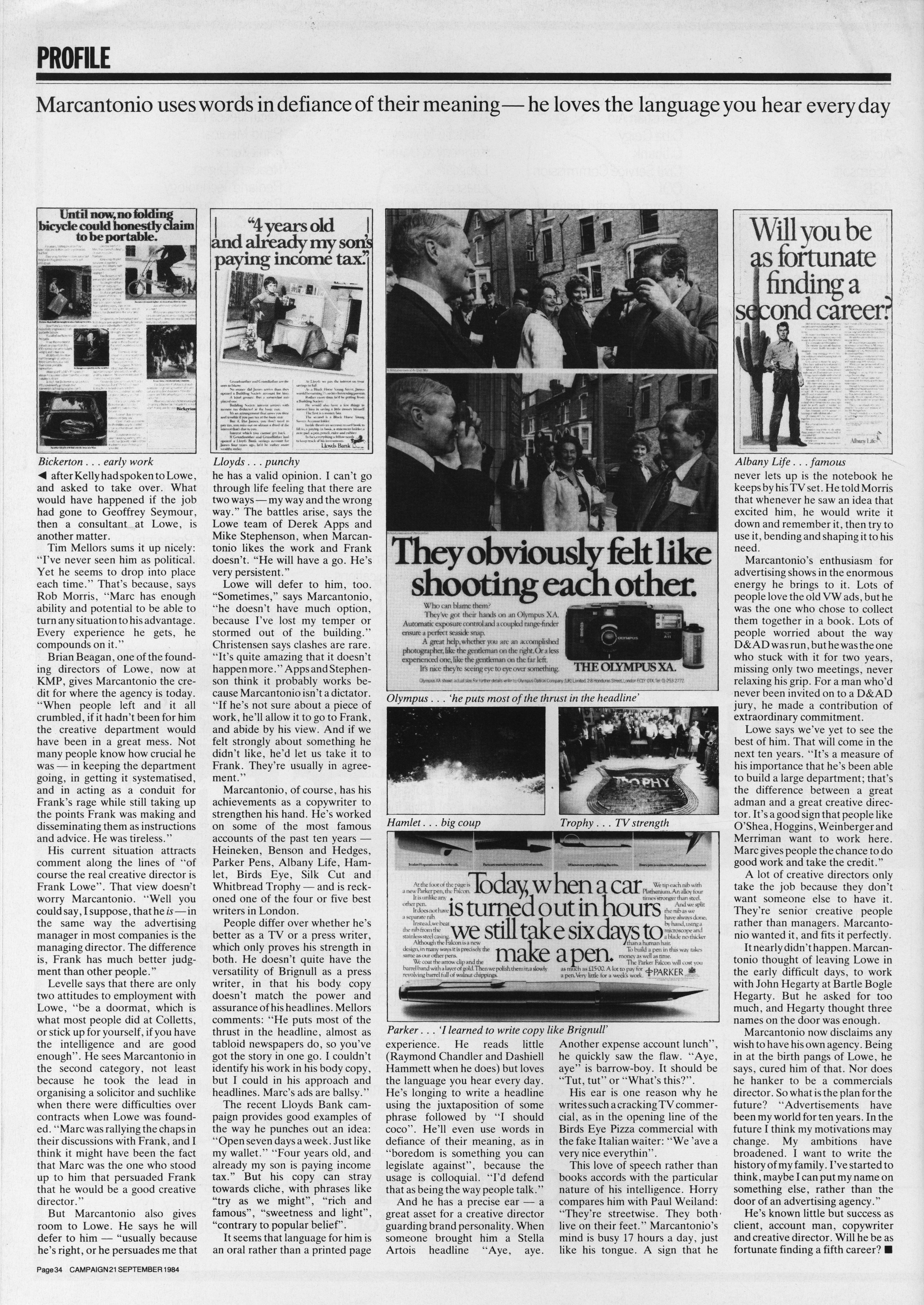 So I will – Lloyds Bank, Reebok, Weetabix, Gordons Gin, Parker Pens, The Mail On Sunday, Condor, Castella, Tizer, Ovaltine, KP, The Hanson Trust, Birds Eye, Smirnoff, Coca-Cola – they were huge.